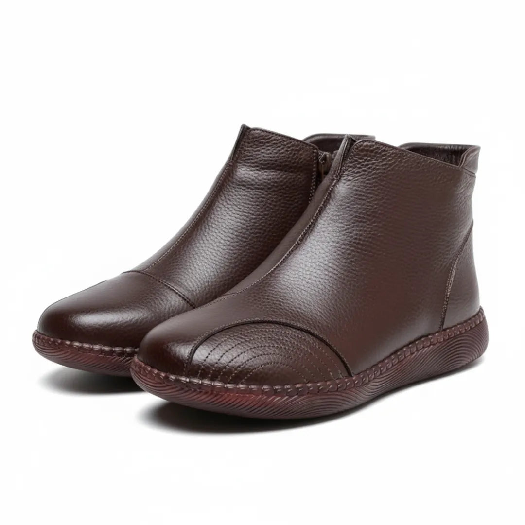 Ines Leren Enkellaarzen Dames – Comfortabele Platte Laarzen