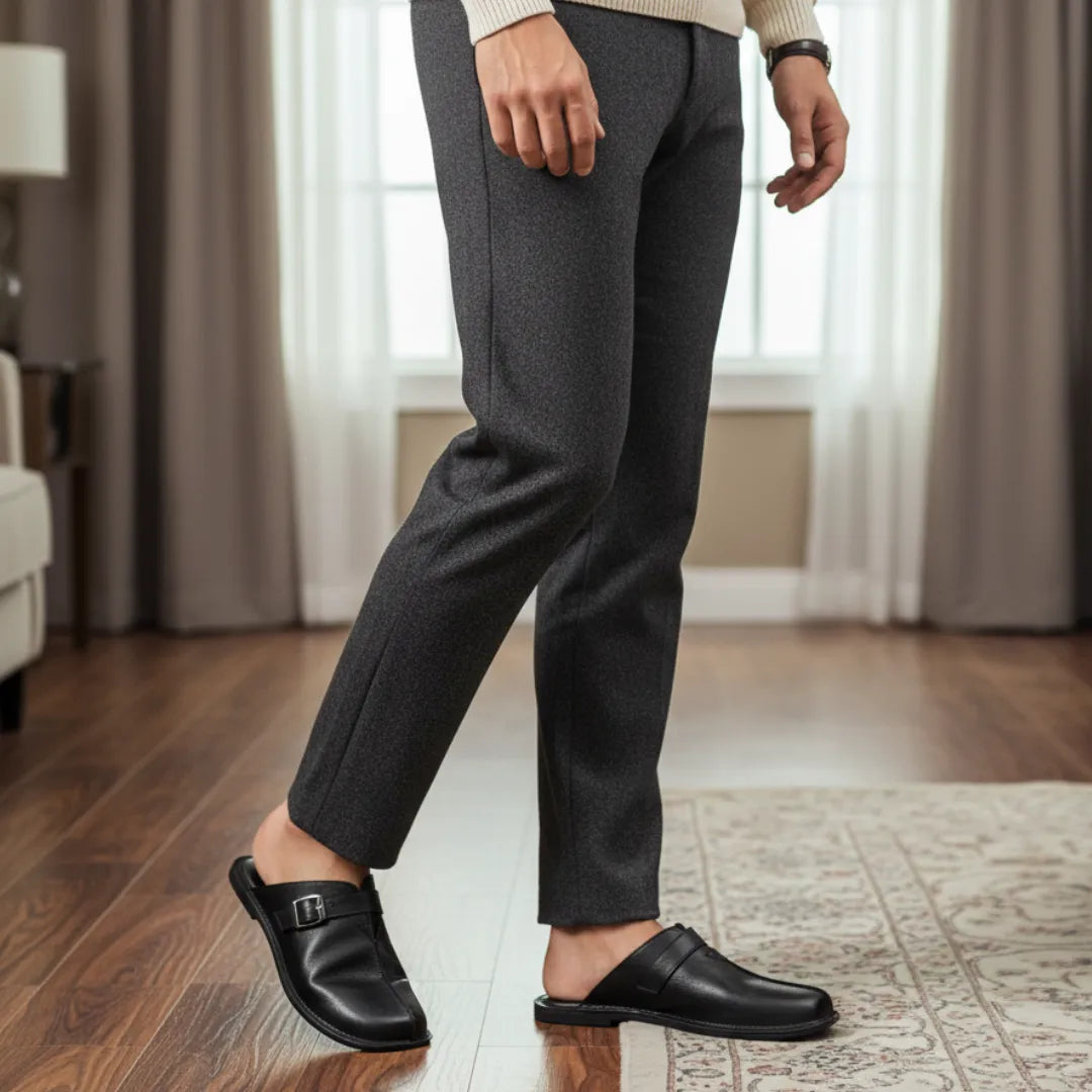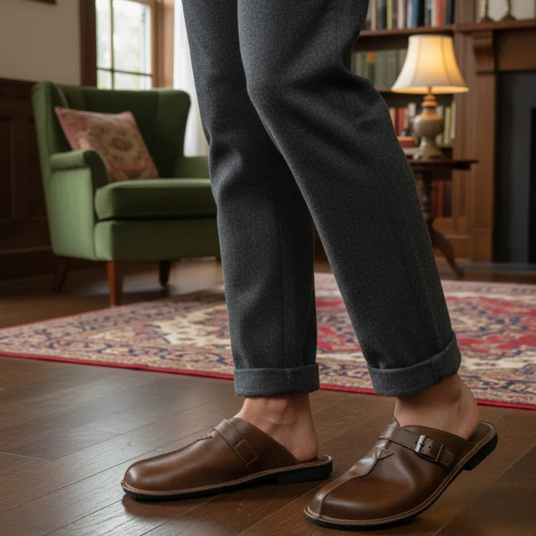 Geniet van het gevoel van warmte en comfort zodra je deze leren pantoffels aantrekt. Het soepele leer vormt zich naar je voet, terwijl de zachte zool zorgt voor een ontspannen stap, ideaal voor rustige momenten binnenshuis.