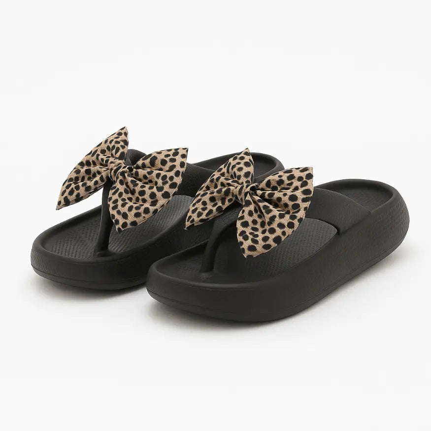 Liv Slippers met Strik - Comfortabele Slippers met Panterprint